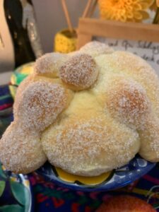 - Das Essen (mexikanisch) (auf dem Foto ist das typische Totenbrot zu sehen)