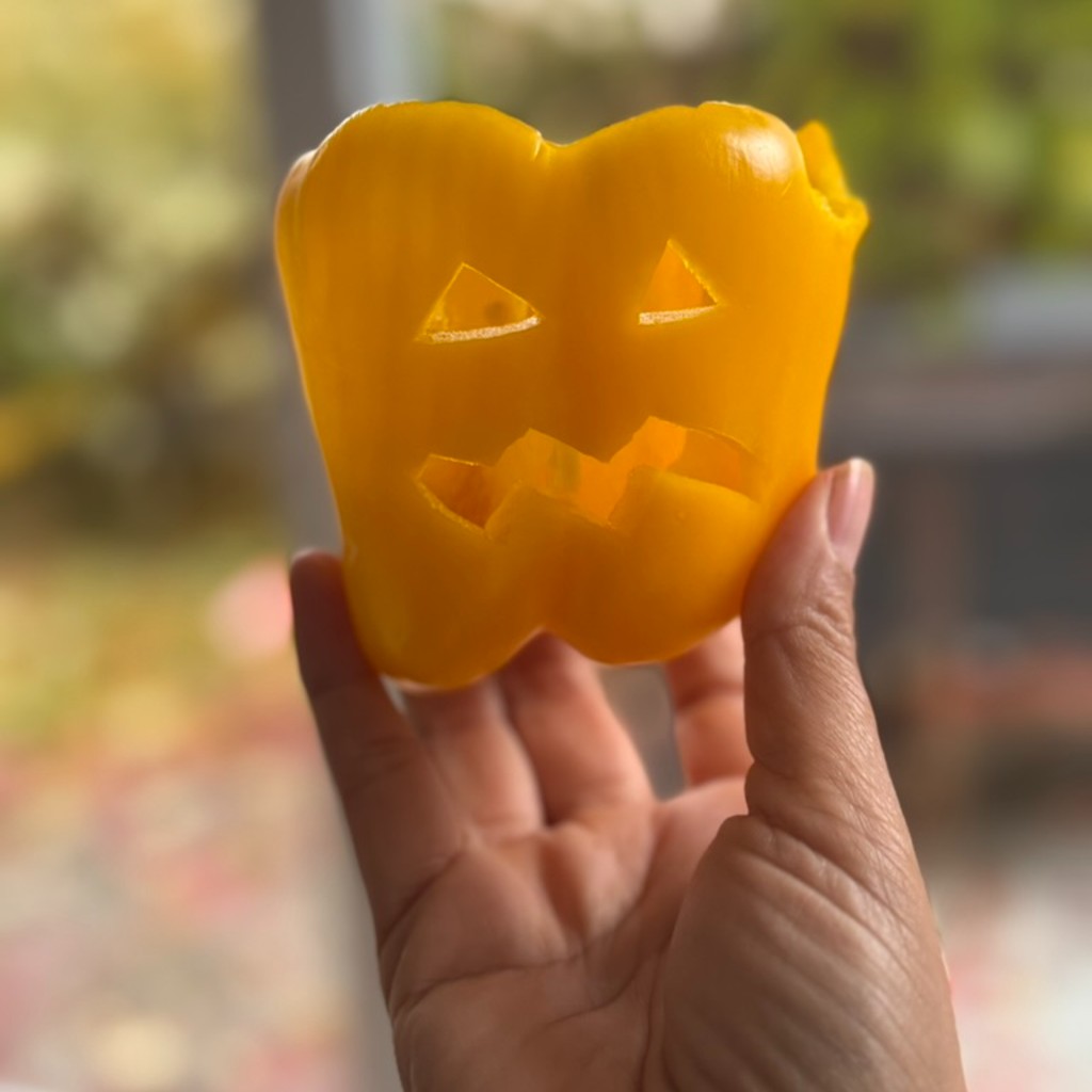 Für mich ist Halloween eine kreative Zeit mit meinen Kindern, in der wir Paprikas in gruselige Gesichter verwandeln (wie auf dem Foto) und in einem sicheren Rahmen ausprobieren, wie sich Angst anfühlt, und meine Jungs spüren, dass wir Eltern immer an ihrer Seite sind. Und manchmal sind sie an meiner. Hehe.